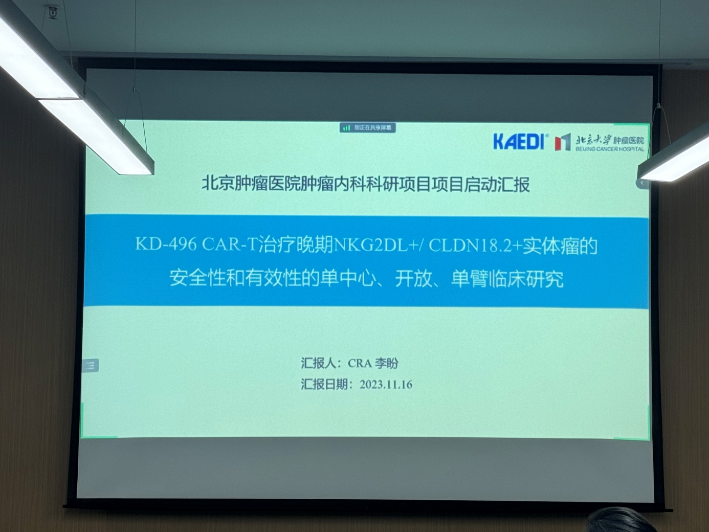 The clinical investigation team led by Professor Shen Lin from the Department of Gastrointestinal Oncology of Peking University Cancer Hospital and Institute, as well as the representatives of the ethics institution and the KAEDI team jointly opened and witnessed the historic moment of the clinical trial of KD-496 CAR-T cell injection for the treatment of NKG2DL+/CLDN18.2+ advanced solid tumors. At the kickoff meeting, the clinical investigators gave professional guidance on the development of this project and placed high hopes on it.